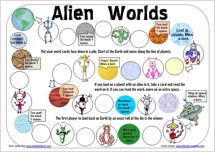 "Alien Worlds" printable board game for Sight Vocab Cards